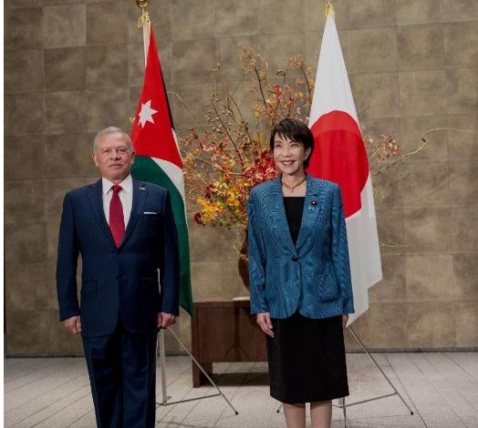 من جانبها، رحبت رئيسة الوزراء اليابانية بزيارة جلالته لليابان، معربة عن تقديرها للدور المهم للأردن، بقيادة جلالة الملك، في السعي لتحقيق الاستقرار في المنطقة، ومؤكدة حرص بلادها على تعميق الشراكة الاستراتيجية مع المملكة.